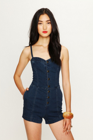 Further, ASOS, quite possibly my new favorite online store, has some out-and-out overall shorts. They are all over this trend. I think these are my favorite because they stay true to the denim overalls concept, which is what has me intrigued. And, to top it off, they have it in a different color!